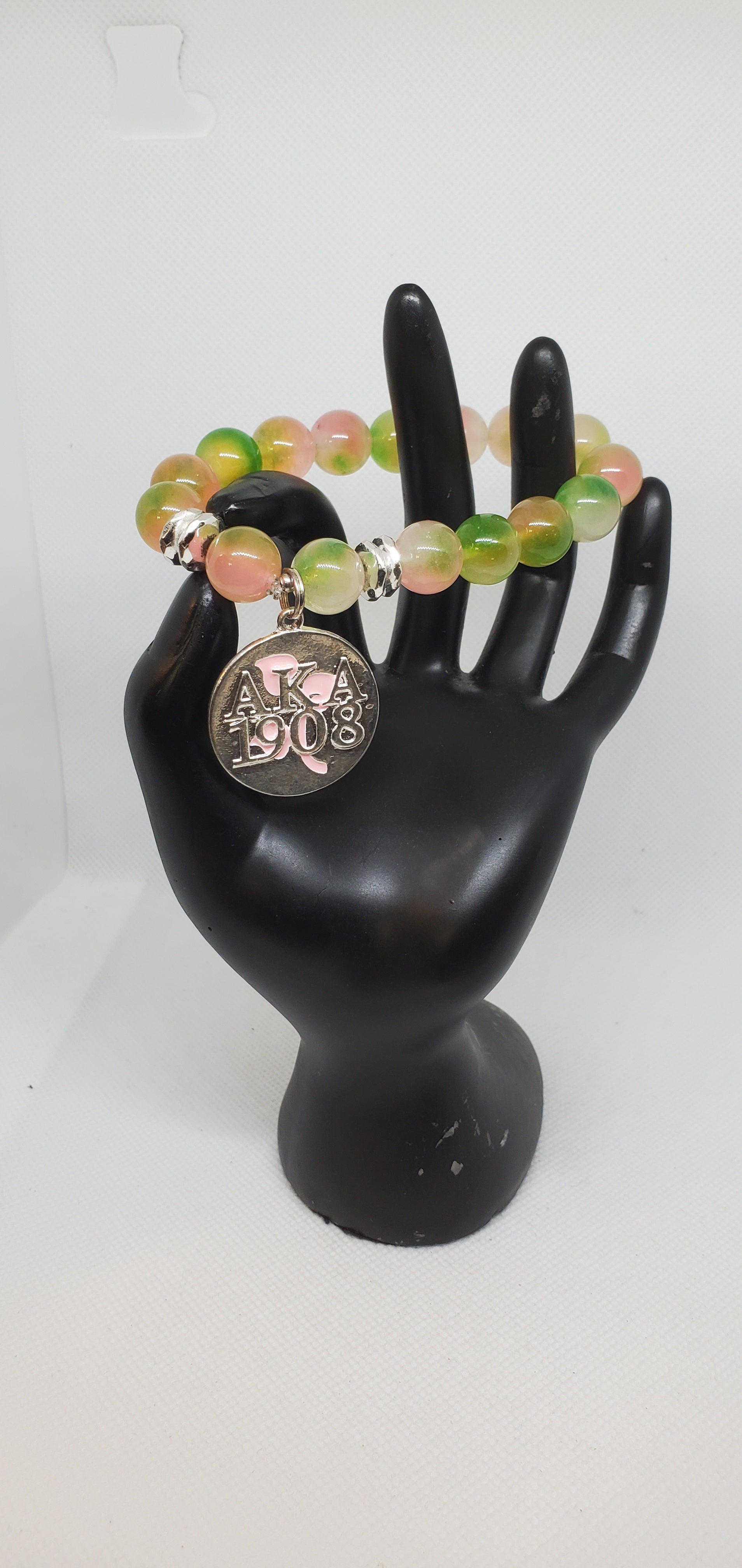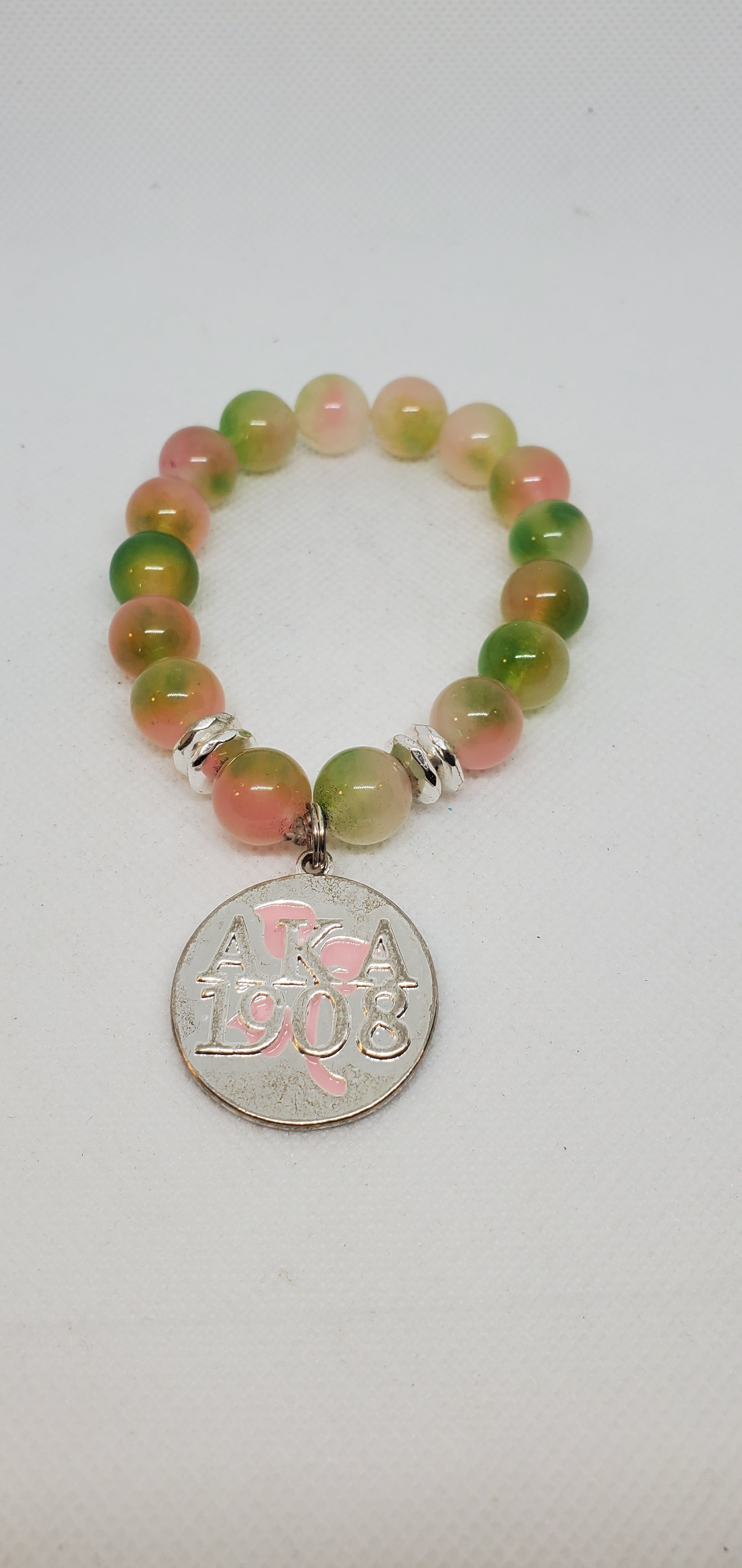 Pink and green transparent jade with silver 1908 charm