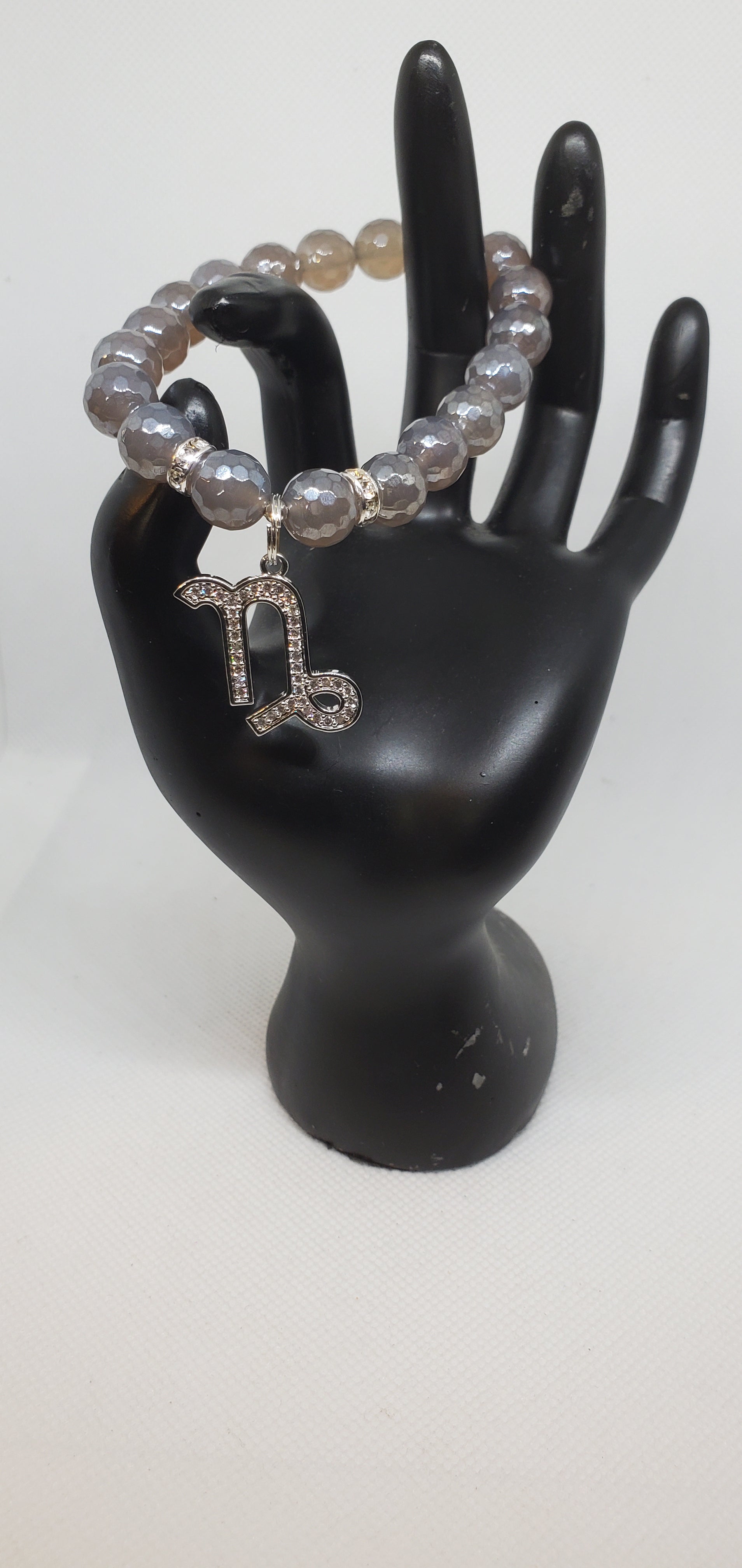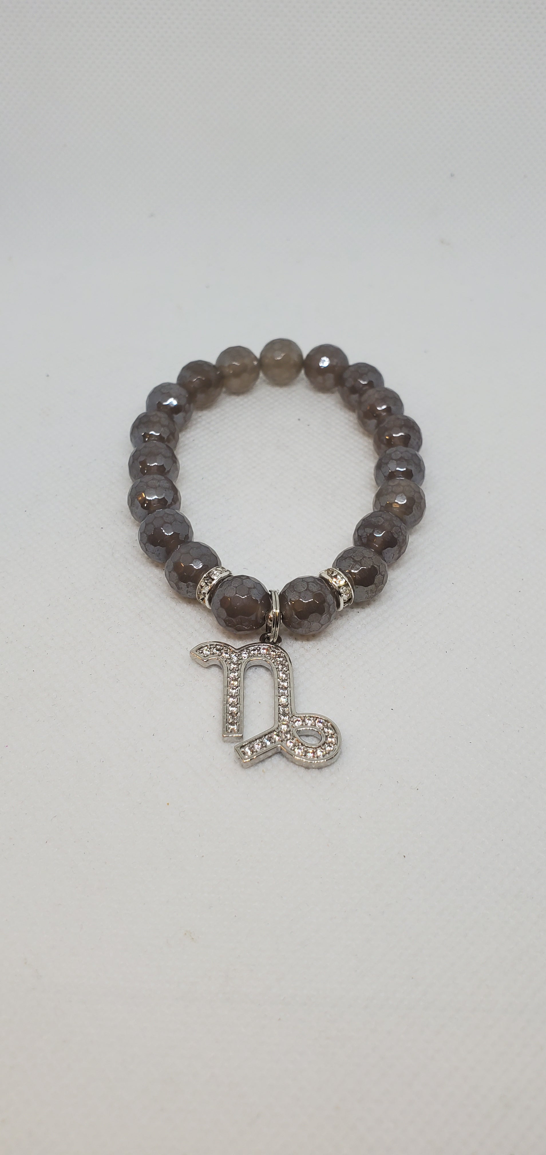 Zodiac bracelet created in the zodiac color - grey faceted jade with cubic zirconia Capricorn charm