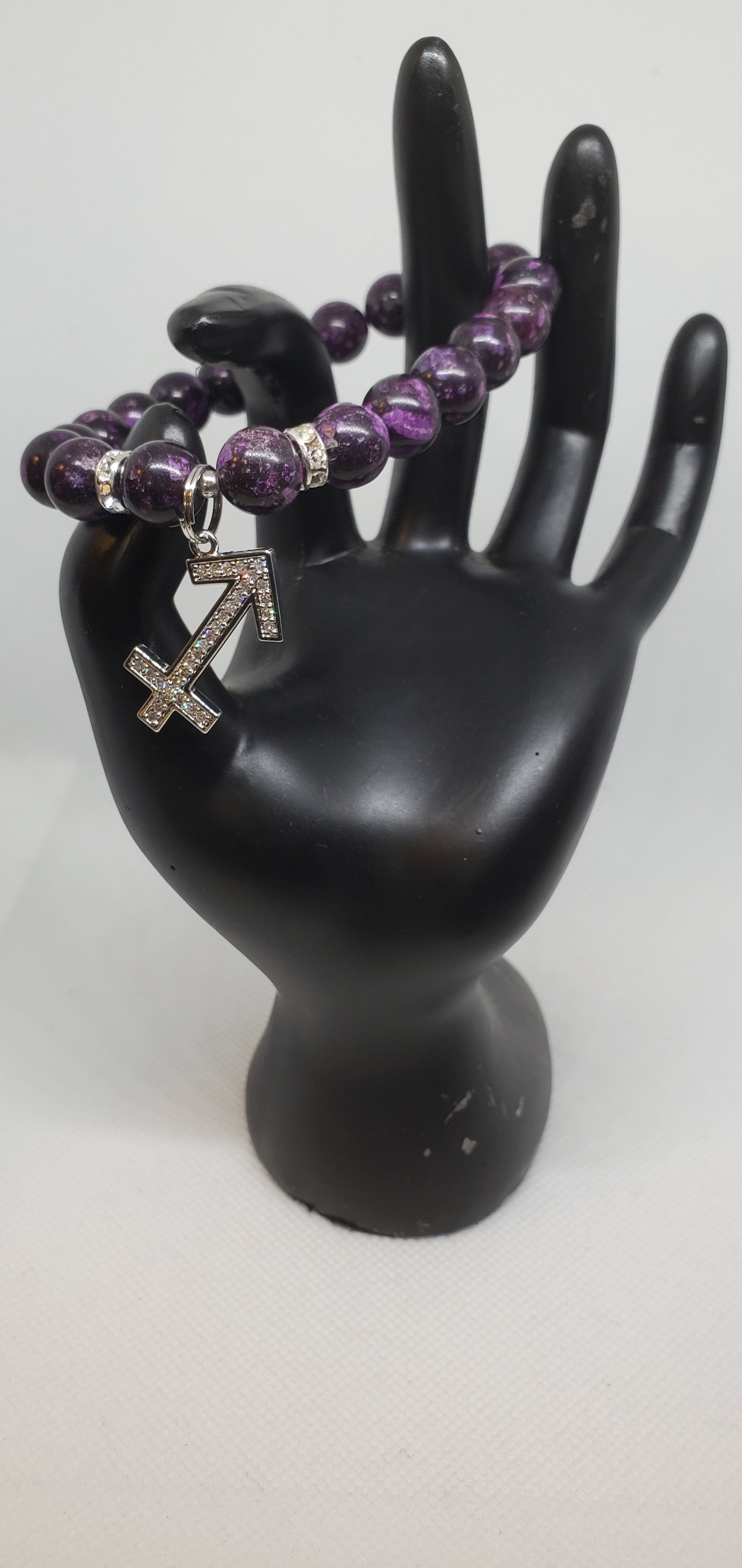 Zodiac bracelet created in the zodiac color - purple tiger eye with cubic zirconia Sagittarius charm