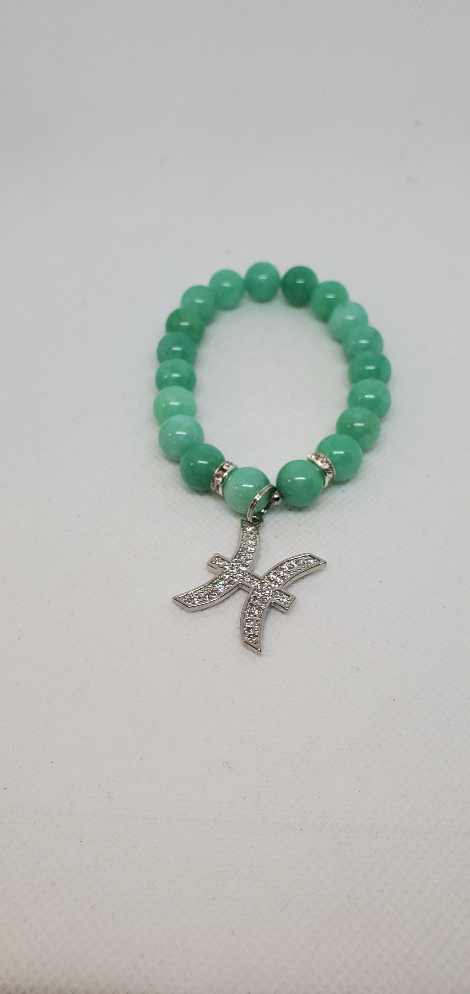 Zodiac bracelet created in the zodiac color - seafoam green smooth jade with cubic zirconia Pieces charm