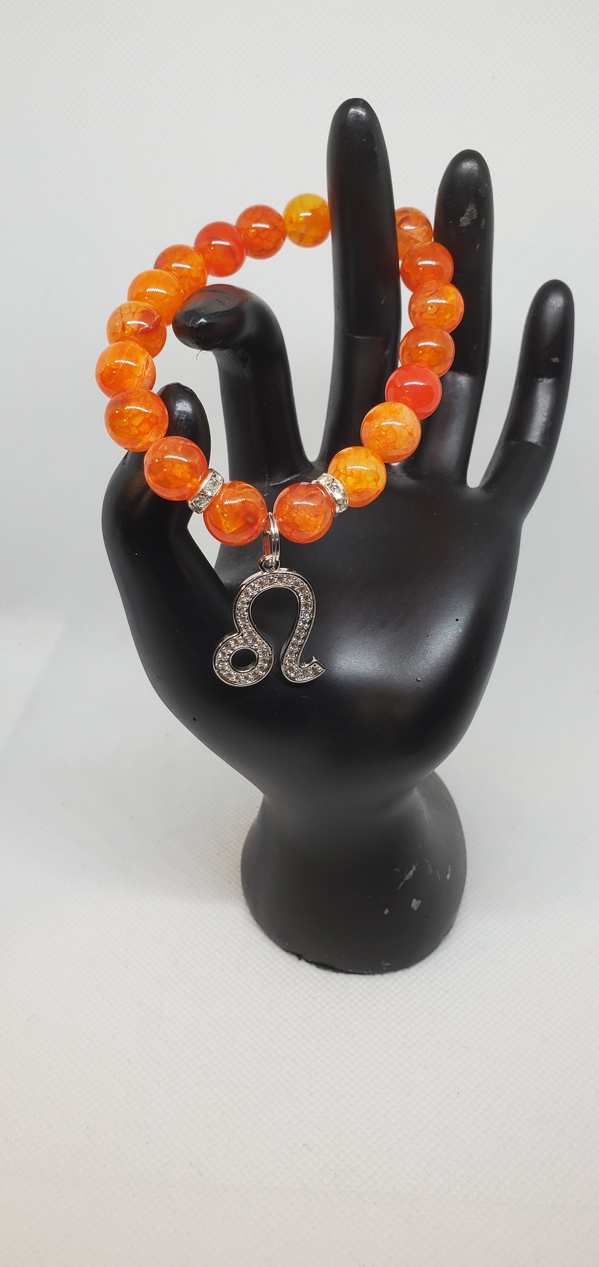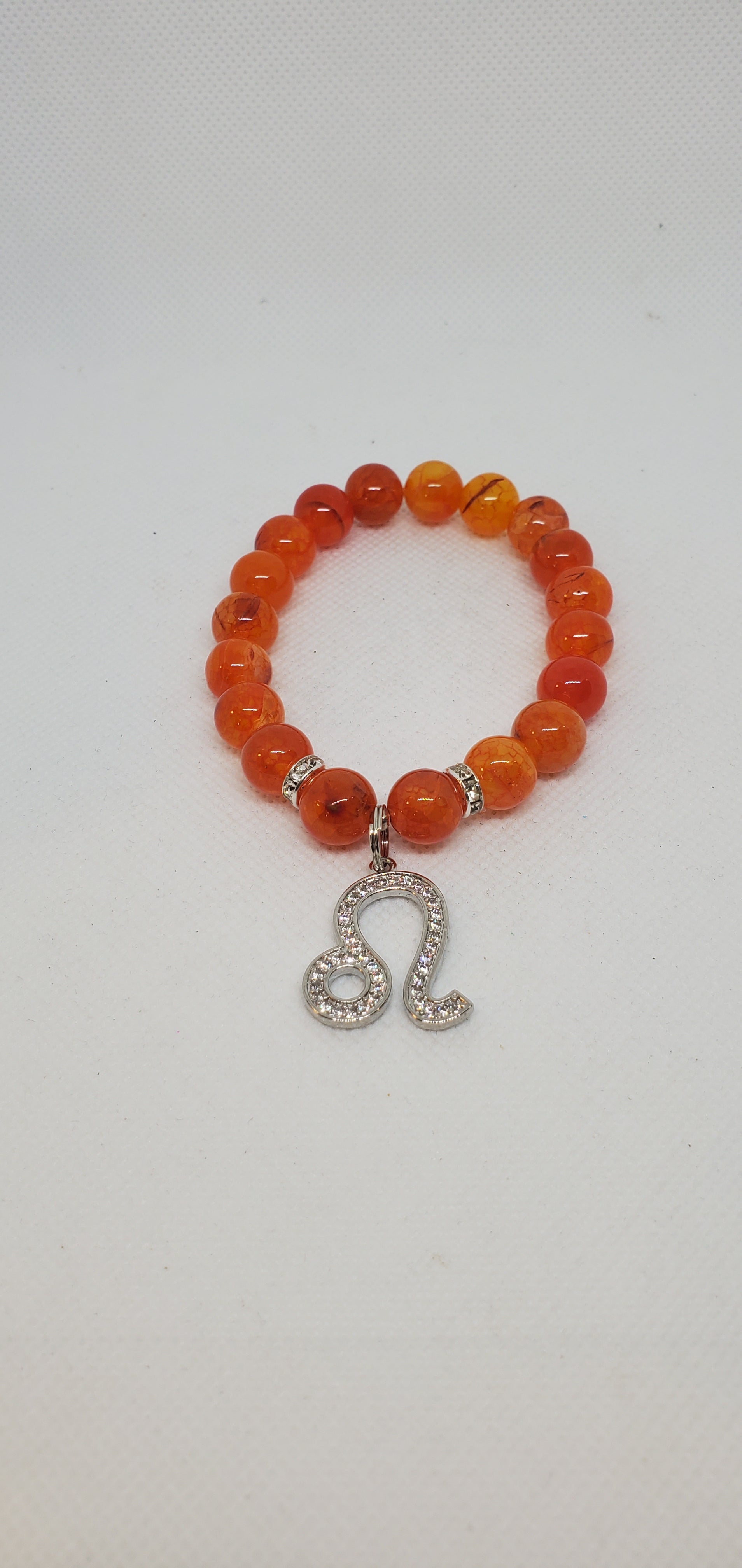 Zodiac bracelet created in the zodiac color - orange smooth jade with cubic zirconia Leo charm