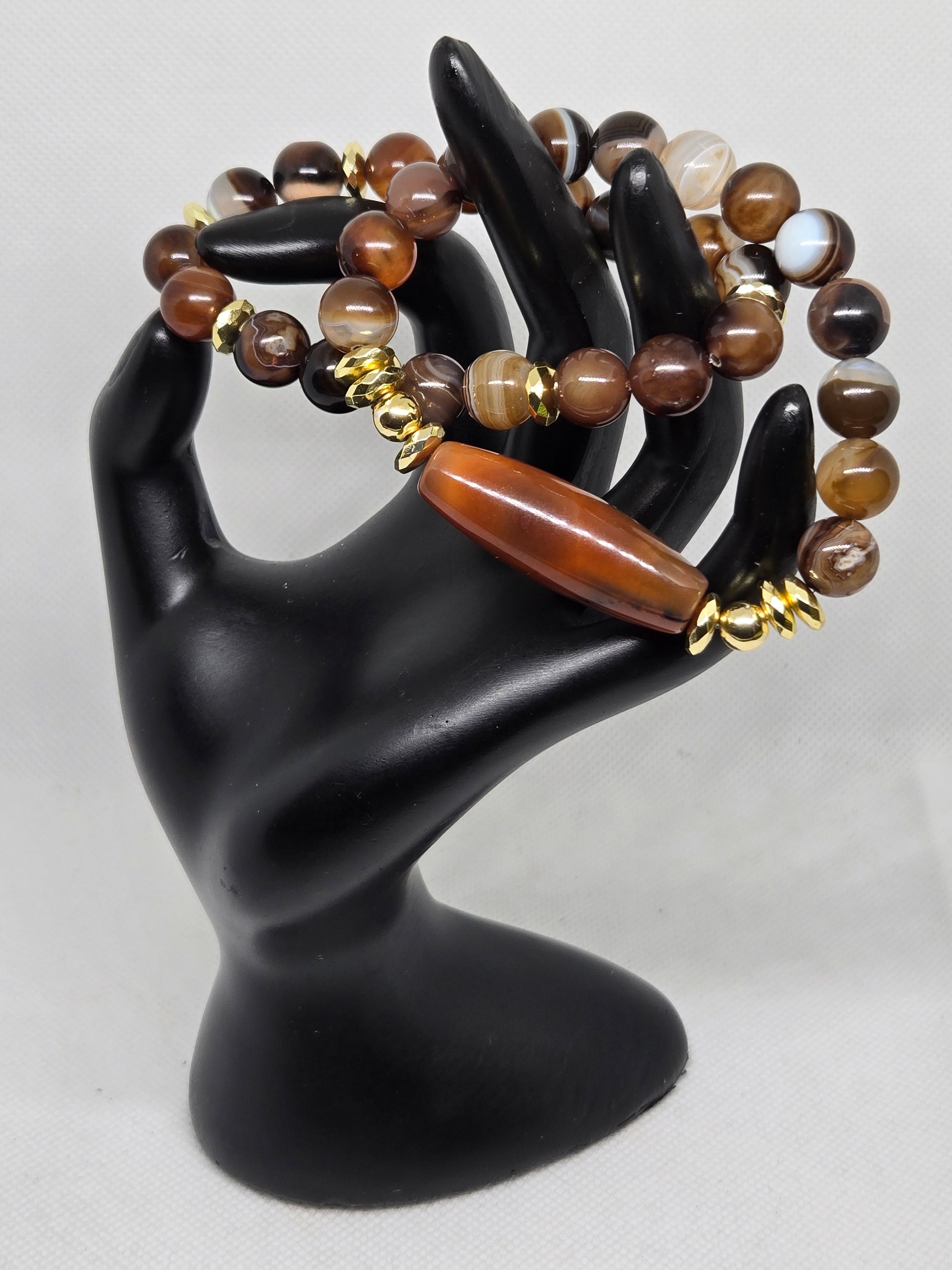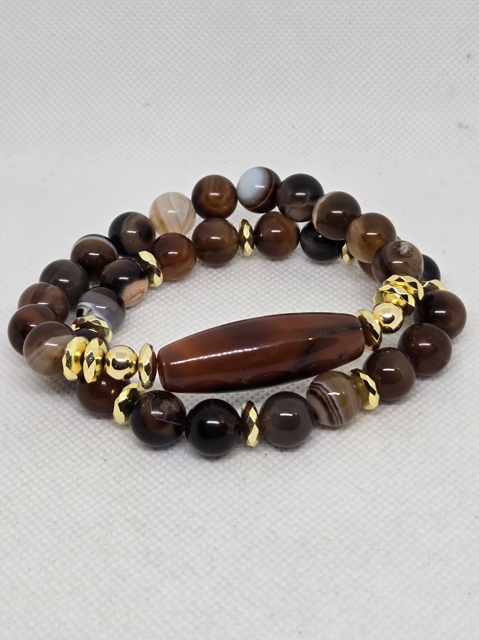 Brown banded agate with agate focal and gold hematite accents