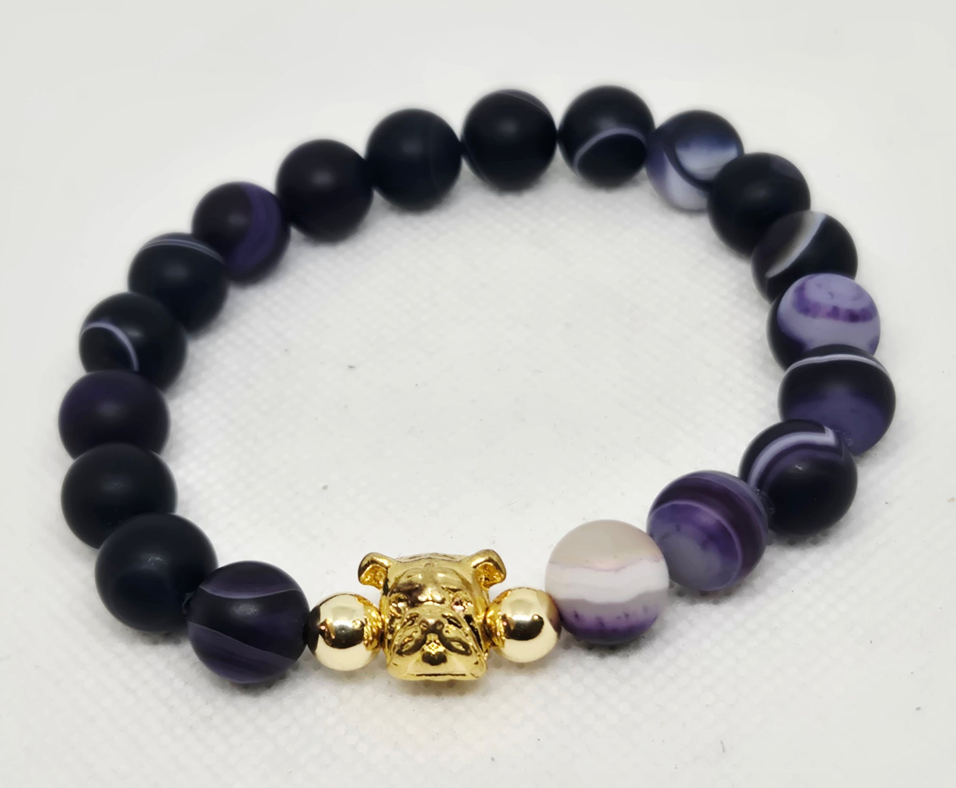 Bulldog on deep purple matte stripe agate