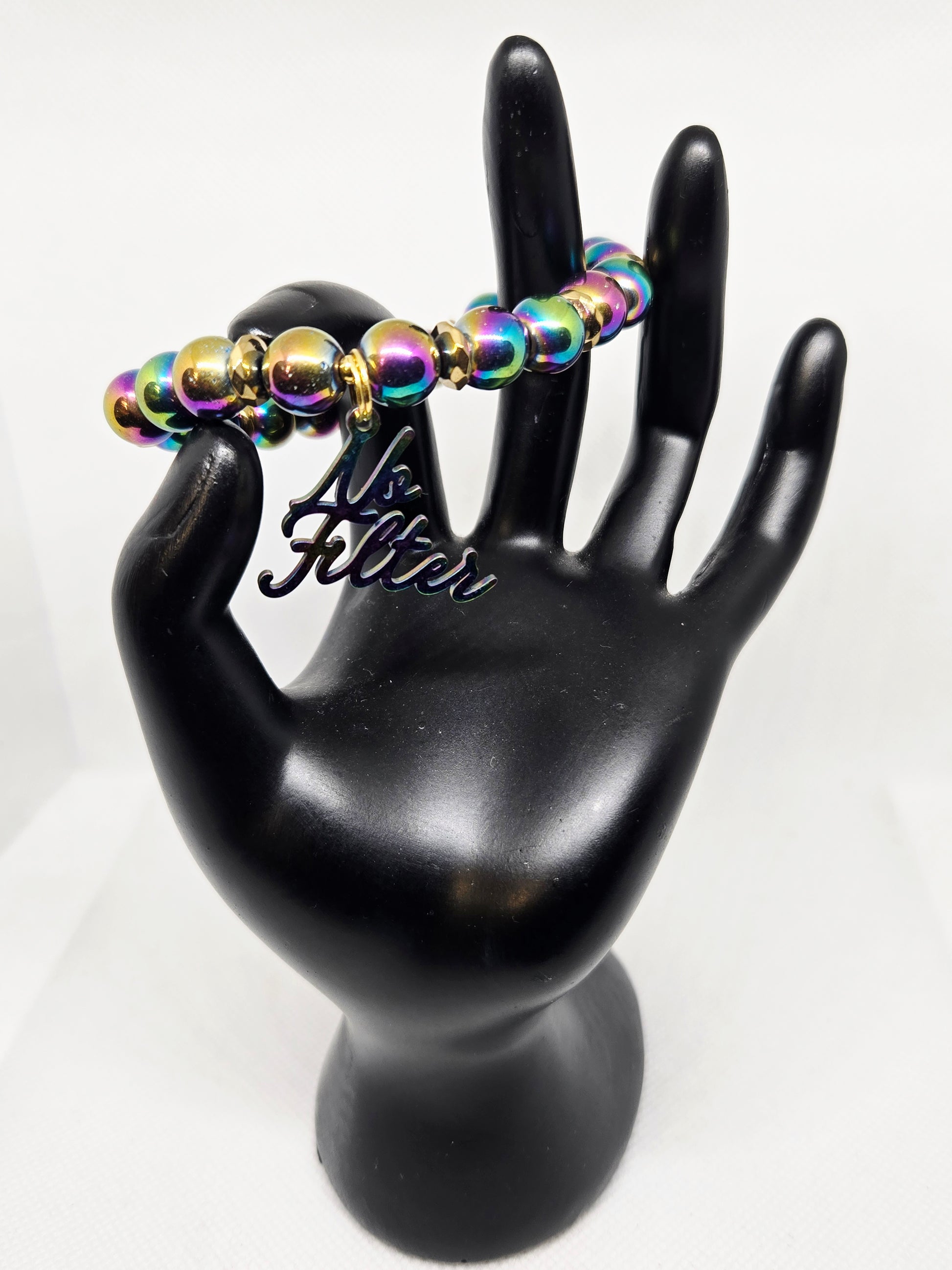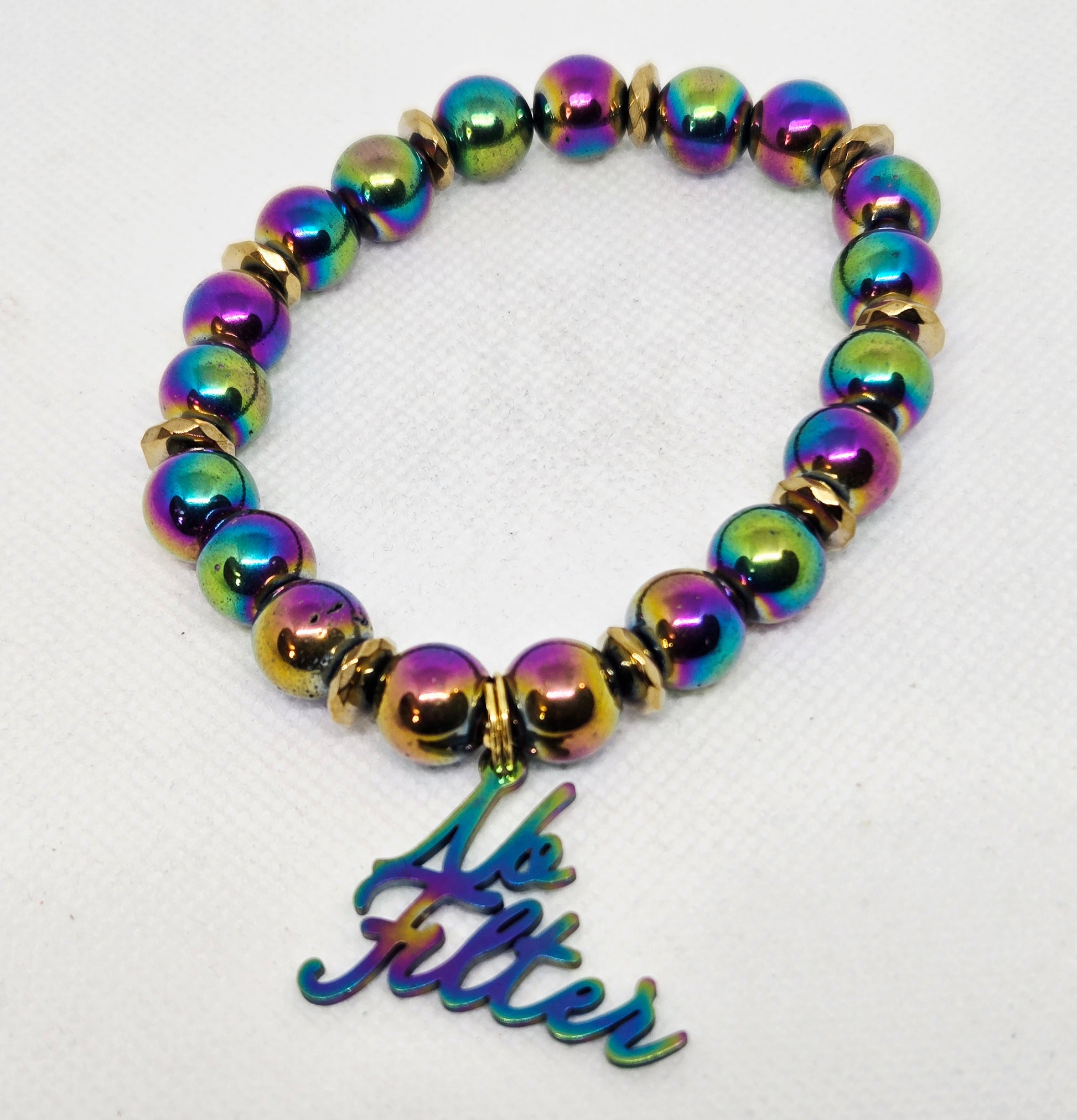Rainbow hematite with rainbow charm no filter