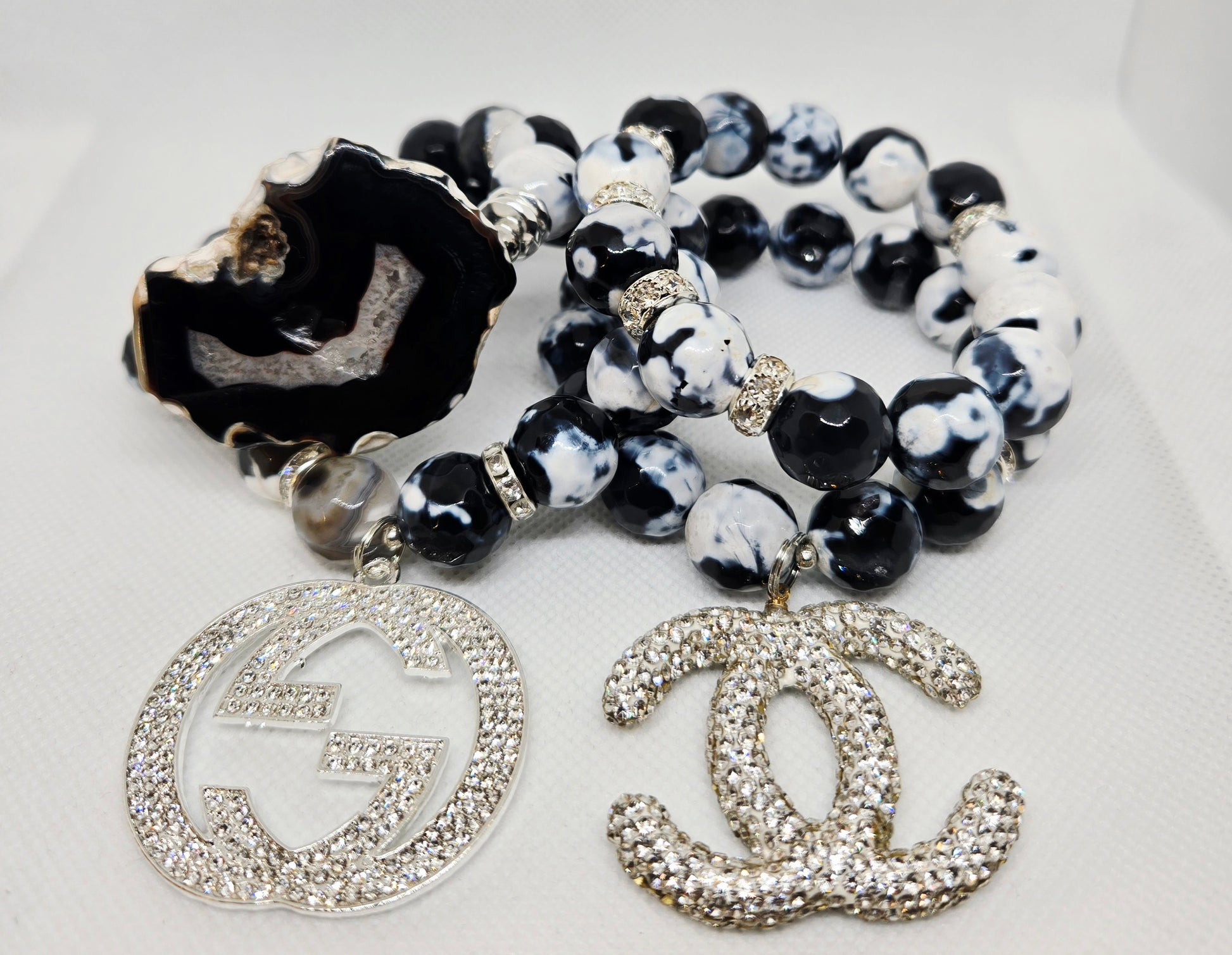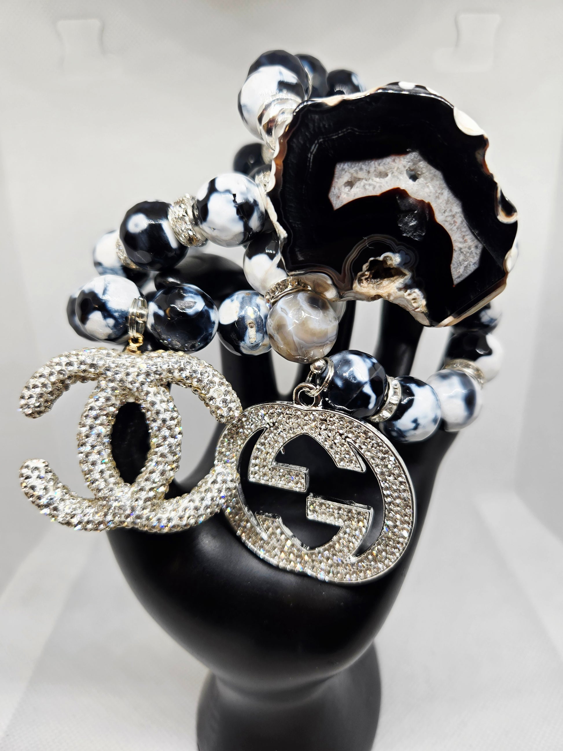 Chunky fire agate 4 stack with bling fashion charms