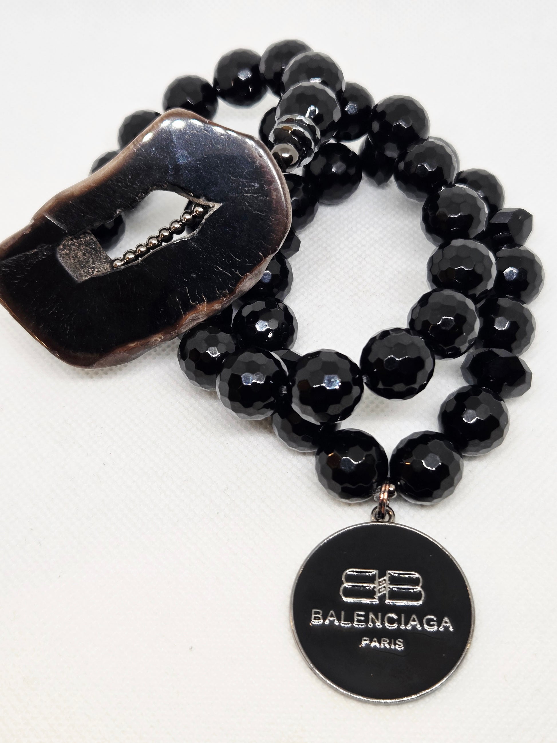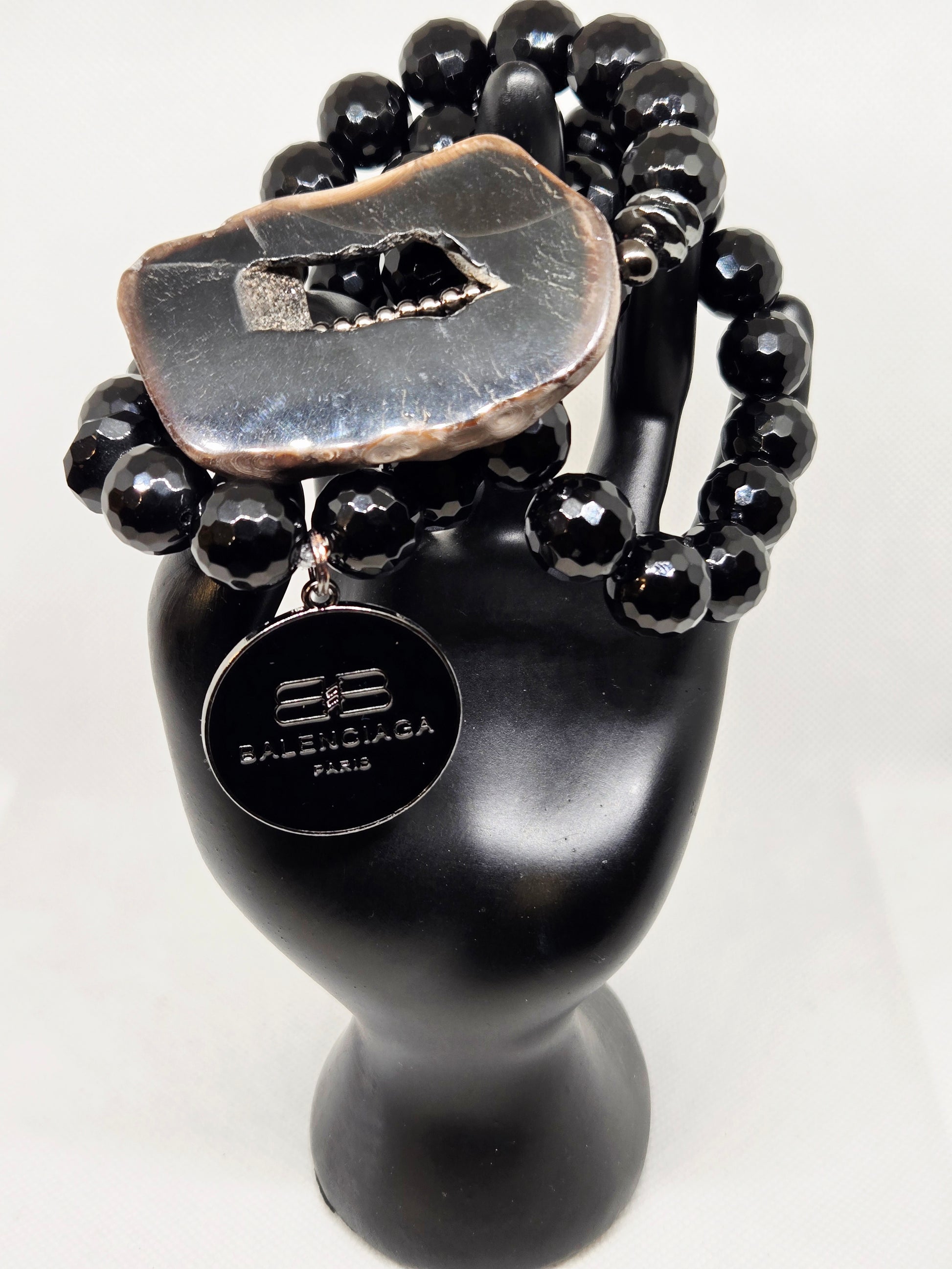 Chinky black faceted onyx with a chunky agate stone and fashion charm