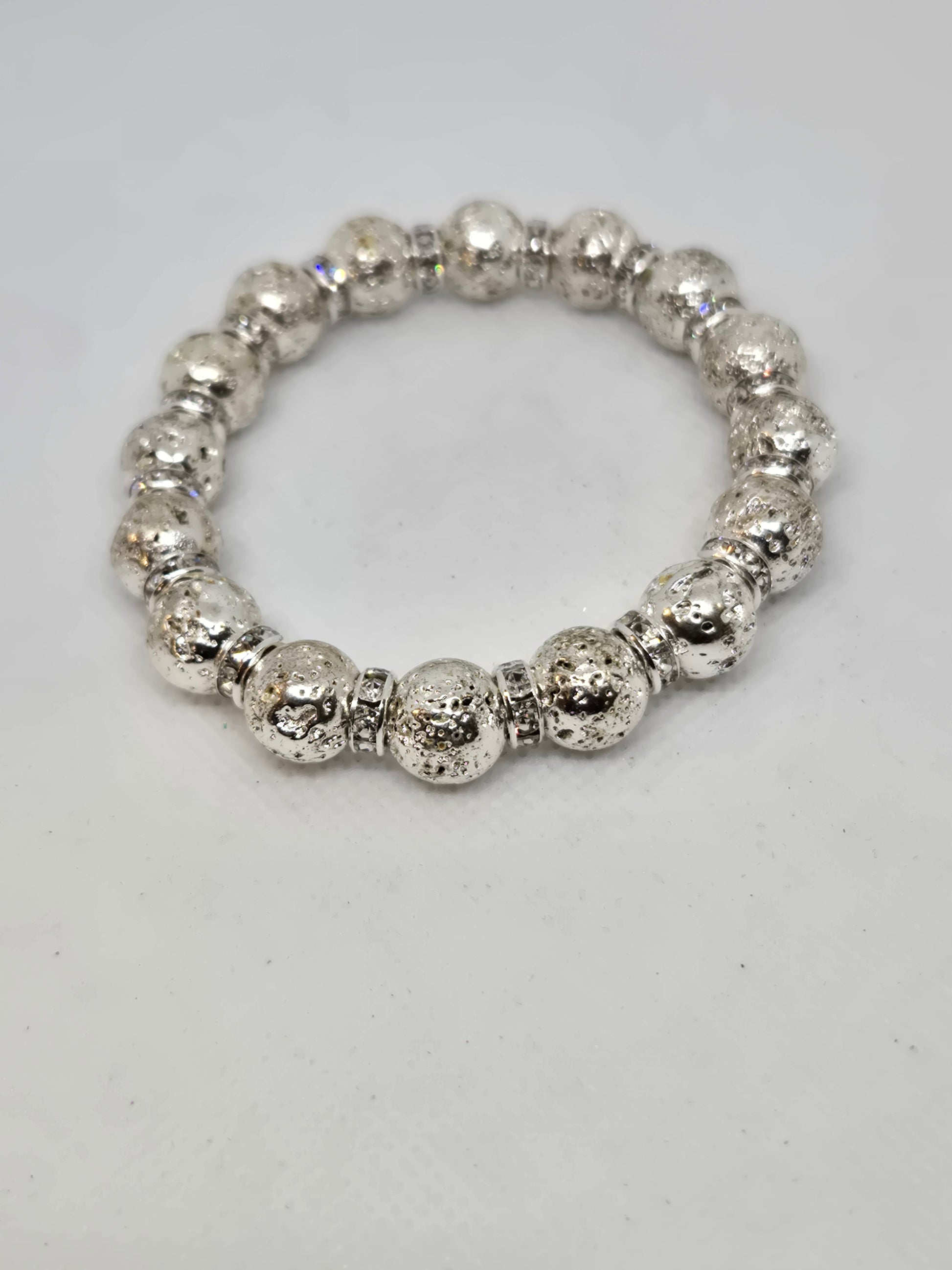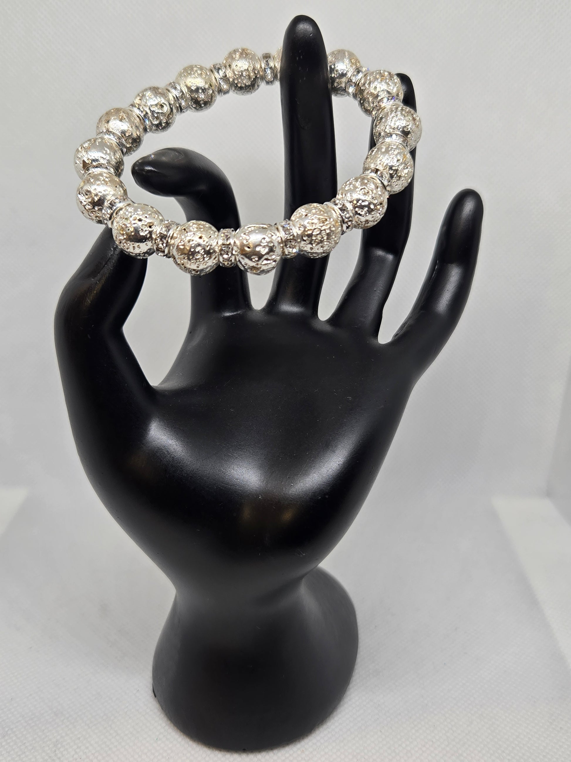 Silver lava beads with rhinestone accents