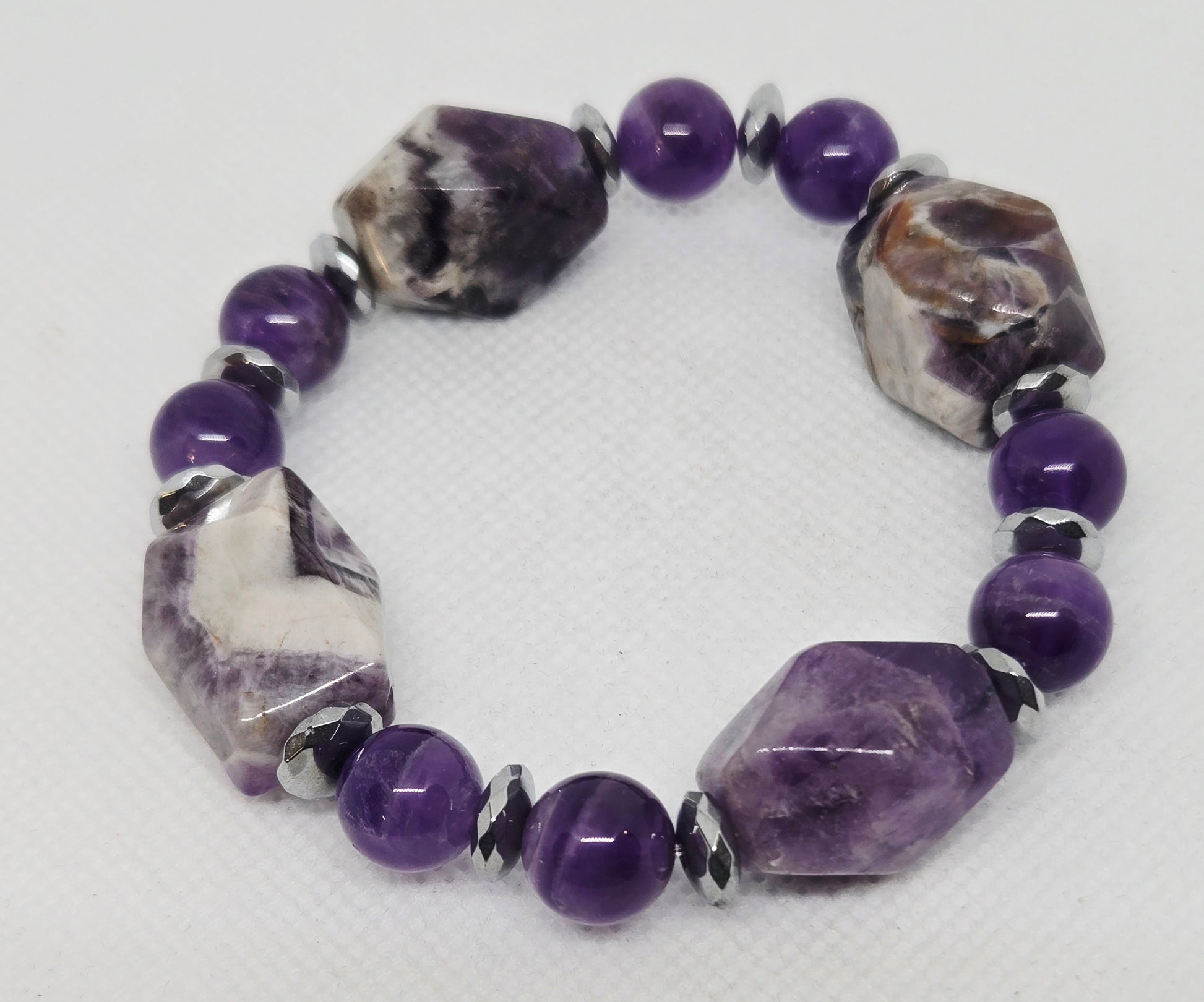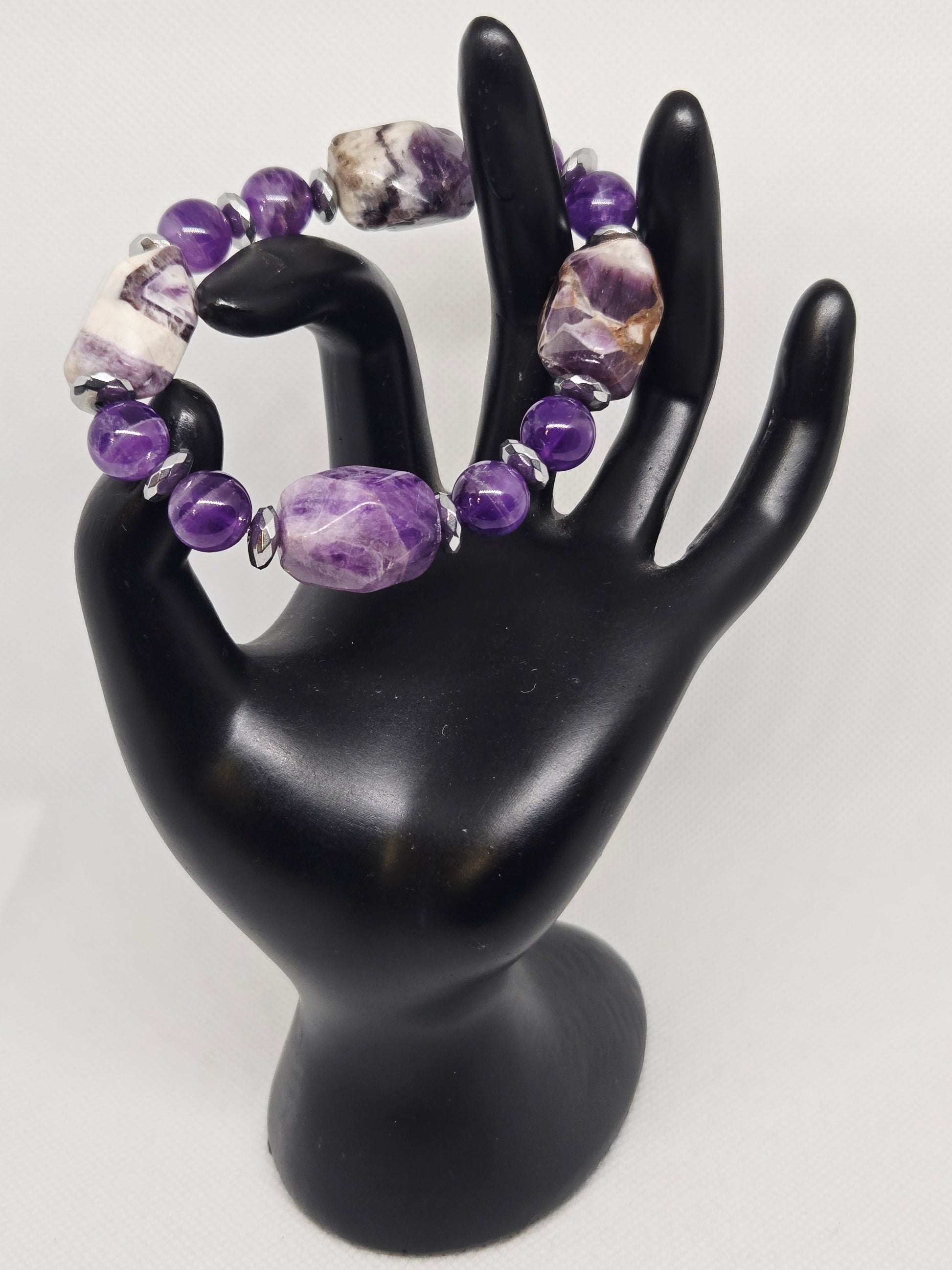Amethyst nuggets and round beads with silver hematite accents