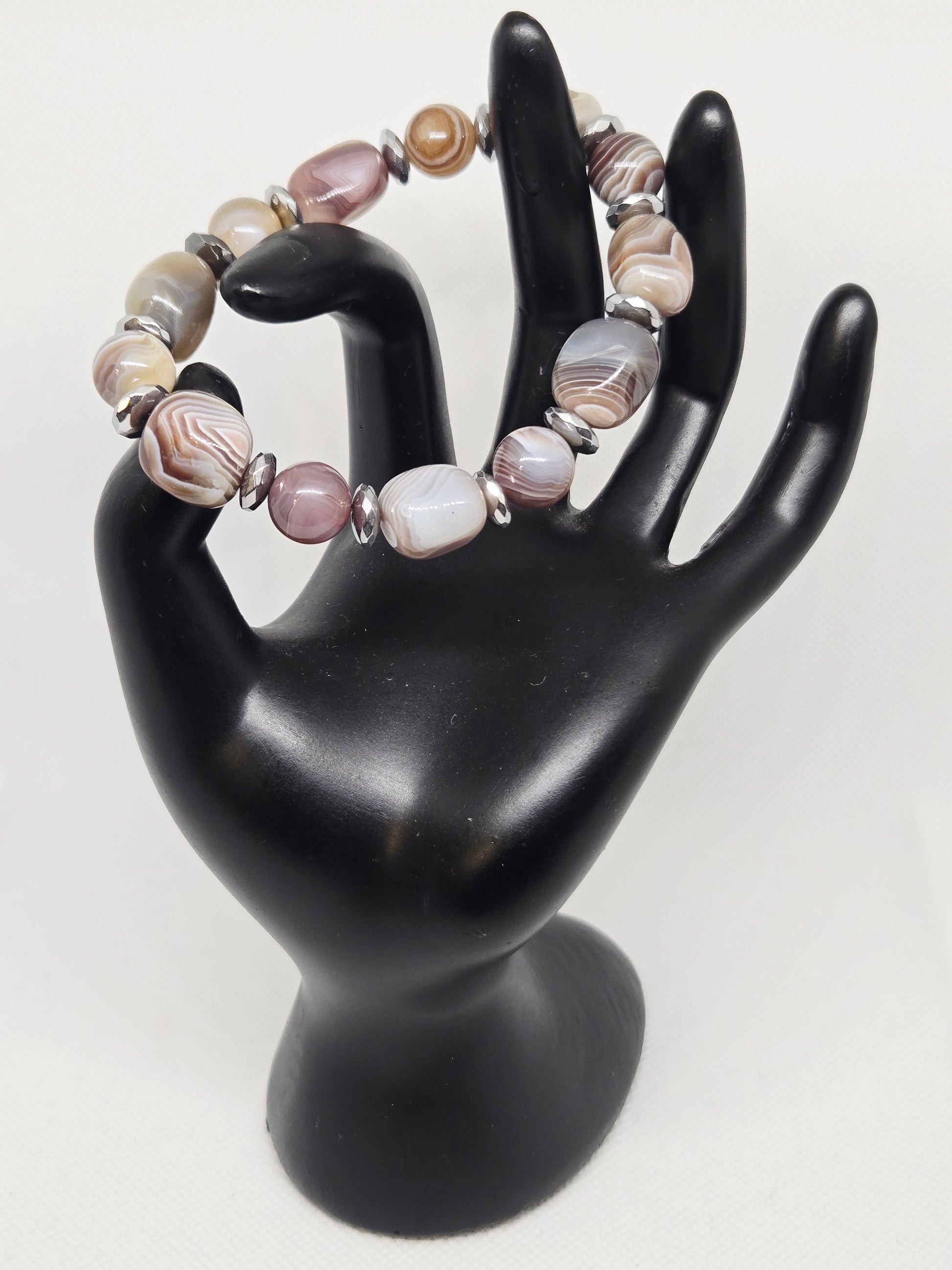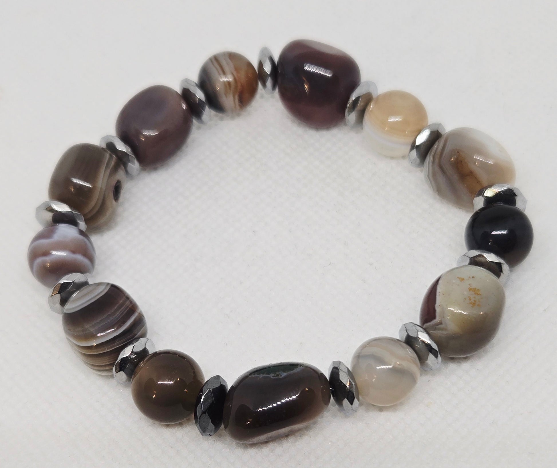 Botswana agate nuggets and round beads with silver hematite accents