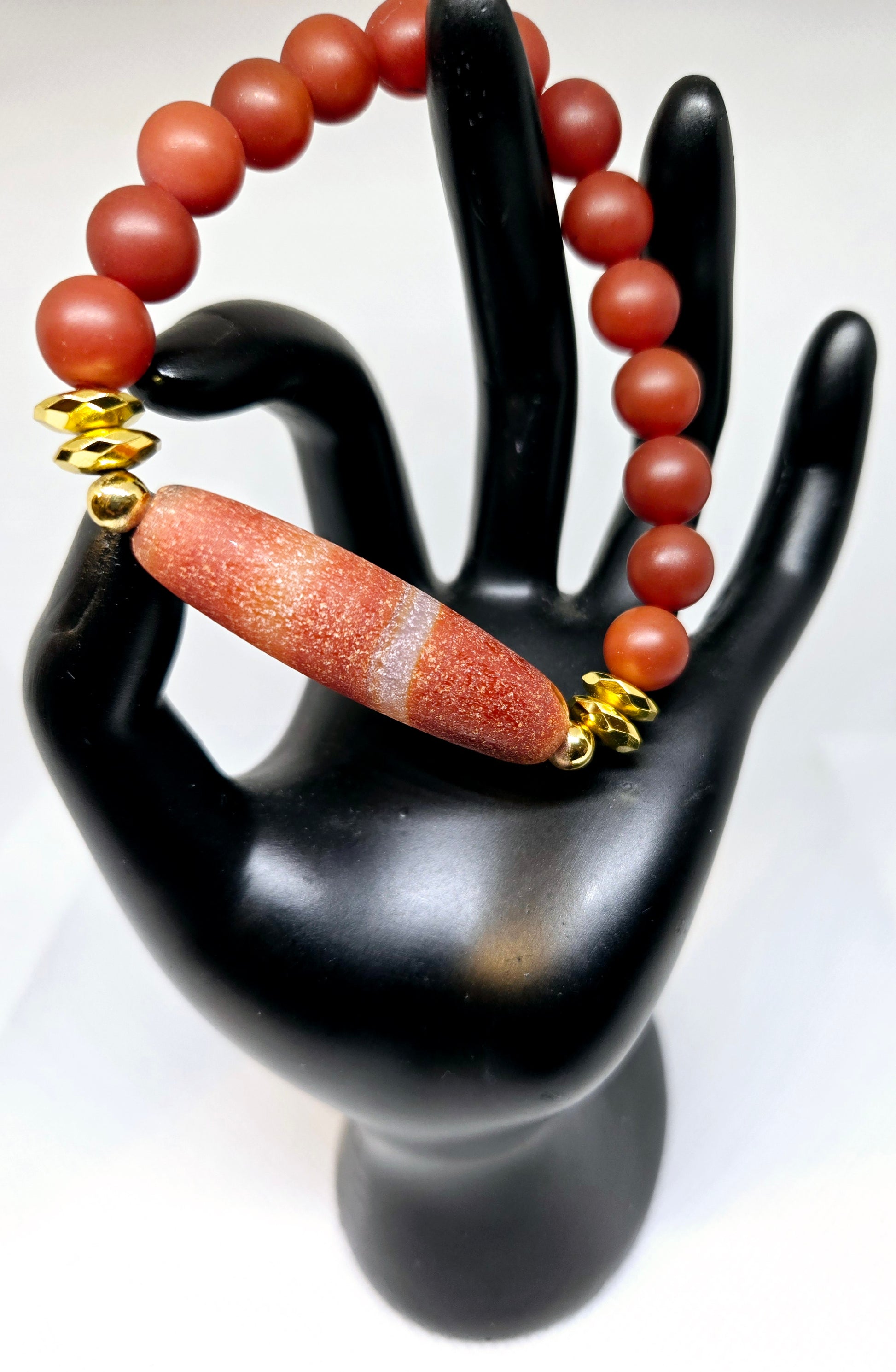 Burgandy matte jade beads and a burgundy matte agate focal with gold hematite accents